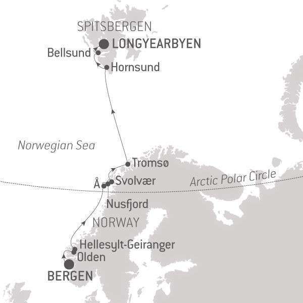 You will set sail from Bergen for an 11-day cruise on board Le Boréal which will take you to exceptional sites. Your cruise will conclude with 4 days and 3 nights of luxury expeditions.