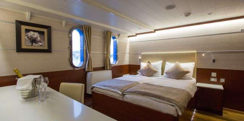 Vessel Type: Small Ship Length: 40m Passenger Capacity: 36 Built/Refurbished: 2015 Built in 2015, this beautifully crafted vessel sails the Adriatic coast from Opatija to Kotor taking in the highlights of this stunning area. If you are looking for an escape from the formalities of the larger ships, then look no further than the Princess Eleganza. The atmosphere is casual and relaxed, with the dress code reflecting this. With just 36 like-minded passengers, the mood is intimate, and what better way to enjoy the views of magnificent islands and cities, than sitting on the Sun Deck watching the world pass slowly by. Part of the joy of a cruise aboard this vessel is its capability to dock in small ports or drop anchor in any suitable spot. Being such a small operation, the close knit team work excellently together and will enrich your overall enjoyment of small ship cruising. The 19 cabins are finished to the highest standard with sleek lines and neutral colours. All are equipped with a safe, air conditioning/heating, hair dryer, and flat screen TV. Each cabin also has an en-suite bathroom with shower, toilet, and basin. Most cabins also feature a dressing table and chair. Main Deck cabins have port holes, whilst Upper Deck cabins have small windows. The Promenade cabins have larger picture windows which offer panoramic views.