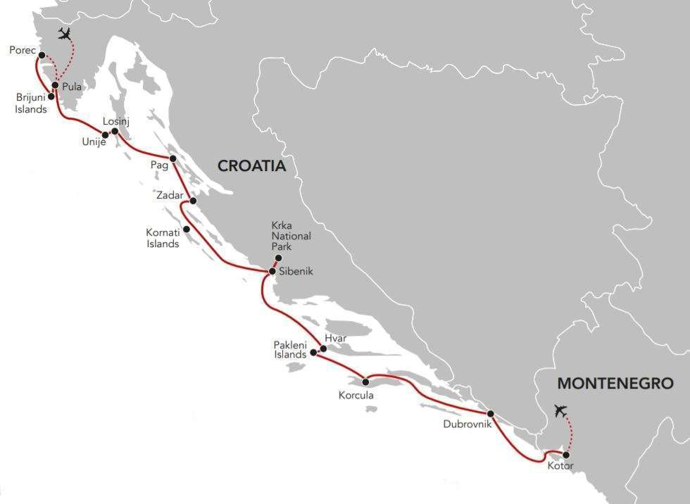 For those who enjoy cruising amongst some of the world’s most beautiful coastal scenery, swimming in calm blue waters and discovering Medieval towns whilst accompanied by a small group of like-minded travellers, this unique itinerary from the Istrian coast all the way to Montenegro will surely appeal. We will sail through some truly beautiful scenery which you can appreciate whilst relaxing on the sun deck including cruising through the Brijuni Islands, the world-famous islets that make up the Kornati National Park and through the fjord-like entrance to Kotor. Other scenic attractions include a visit to the majestic waterfalls of Krka, strolling through the beautiful old towns of Hvar and Korcula and exploring the historic wonders of the World Heritage Sites of Dubrovnik and Kotor. This heady mix of islands and ports represents a fascinating itinerary combining as it does a mixture of renowned locations and under-the-radar gems.