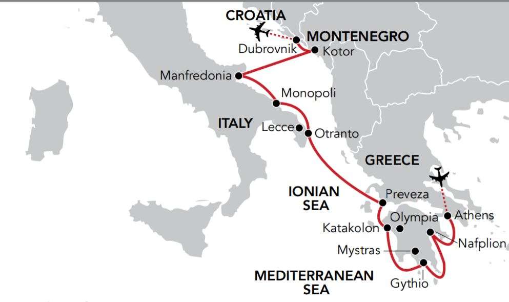 From Athens, our journey to Dubrovnik includes picturesque Nafplion, the fascinating ancient site of Olympia and Byzantine town of Mystras, the stunning beauty of Montenegro’s Kotor Fjord and the historic and scenic wonders of Dubrovnik where we have the added advantage of an overnight mooring. Our journey will be particularly enjoyable as it includes some daytime sailing, allowing for time to relax on board and enjoy the magnificent views.