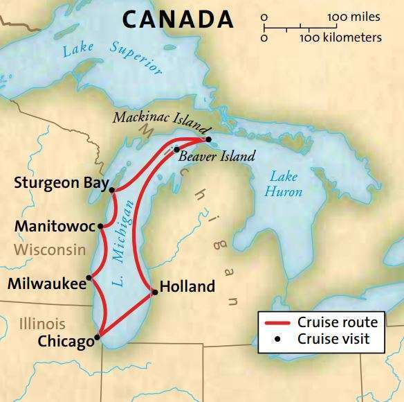 Your voyage begins in the vibrant metropolis of Chicago, IL known for its amazing architecture, wind and waters. With the Windy City’s towering skyline behind you, cruise toward serene Holland, MI, a charming Dutch-inspired village. Admire the cobblestone sidewalks and an authentic 275 year-old working windmill. On Victorian-era Mackinac Island, relive a time gone by. An oasis renowned for its artfully and conscientiously preserved homes, horse-drawn carriages are the only form of transportation. In Wisconsin’s spectacular Door County, visit idyllic Sturgeon Bay, a shipbuilding port where historic lighthouses and luxury yachts create a striking maritime seascape. Discover the rich history, stately architecture, and inviting riverside cafes and brewpubs of Milwaukee, WI.
