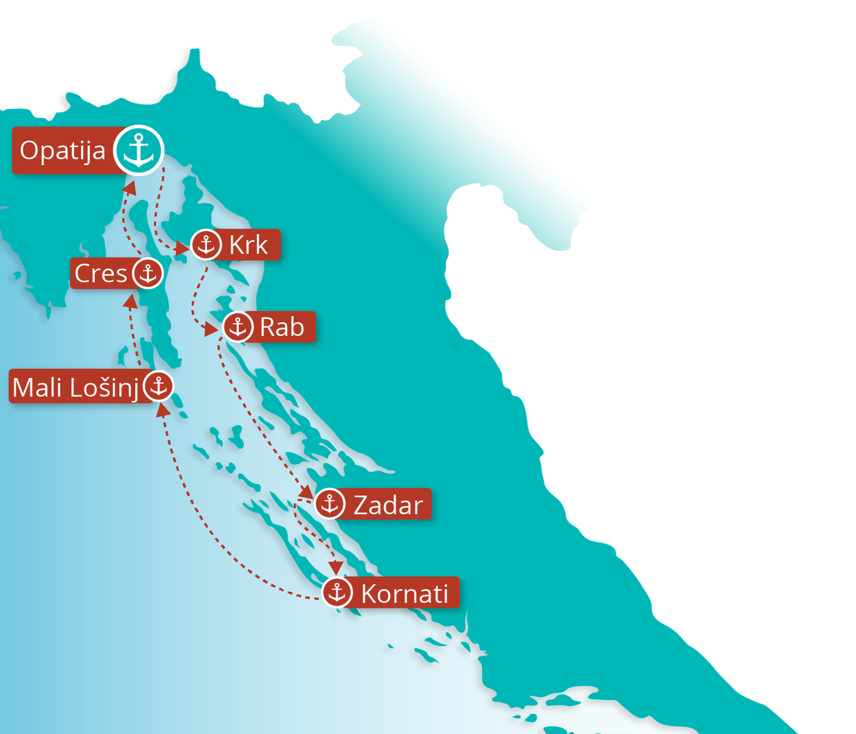 Small ship cruises along the charming Croatian coastline and islands on the lavishly designed, fully air-conditioned vessels. The Kvarner Bay treasures islands of unique beauty and diversity. Embark on the journey of discovery, and spend eight unforgettable days cruising the north Adriatic Sea from one island to another. Savour delicious cuisine, enjoy beautiful sights, dip into the cleanest seawater and let the tranquillity fulfil your soul and sharpen your senses. Every day offers new opportunities and enough time at leisure to explore a new island, antique churches, various historical monuments, and feel the authentic small island way of life.