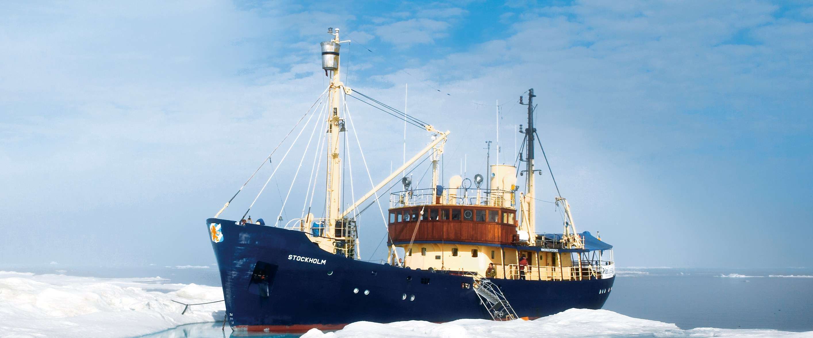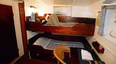 The M/S Stockholm is a classic ship built in 1953 for the Swedish National Maritime Administration. In 1999 she was totally refitted and started her career as a comfortable polar passenger ship. The M/S Stockholm carries a maximum of 12 passengers in twin cabins with bunk beds. All cabins have private facilities and small windows (portholes).