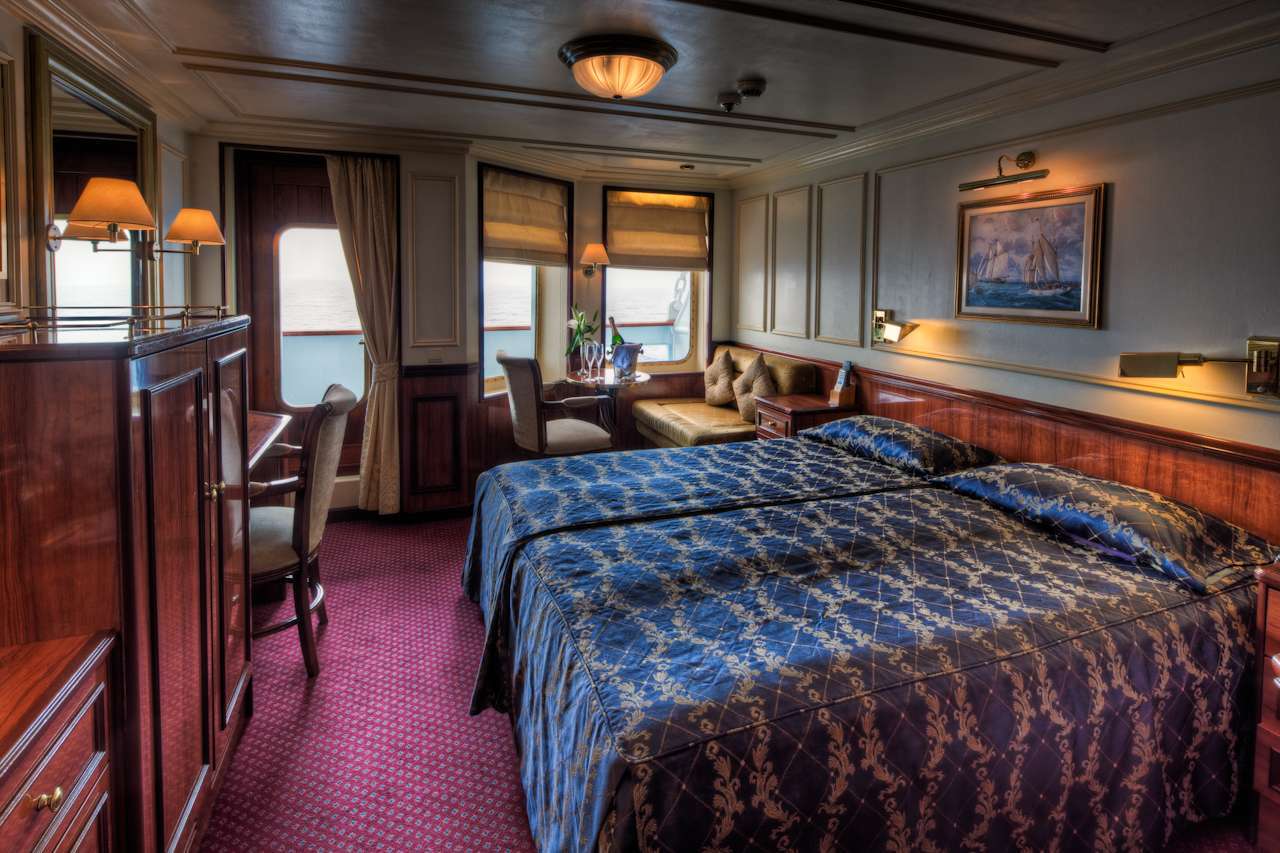 Find your secret hideaway on one of the hidden balconies on either side of the bow. Or climb the mast (with safety harness provided) to one of the passenger lookout crows-nests, thoughtfully furnished with a comfortable settee, where you’ll have the grandest view of all!