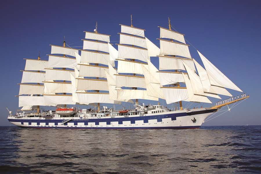 Inspired by the tall ship Preussen, the Royal Clipper has the proud distinction of being the largest and only five-masted full-rigged sailing ship built since her predecessor was launched at the beginning of the last century. With her complement of 42 sails, Royal Clipper is a splendid sight to behold.