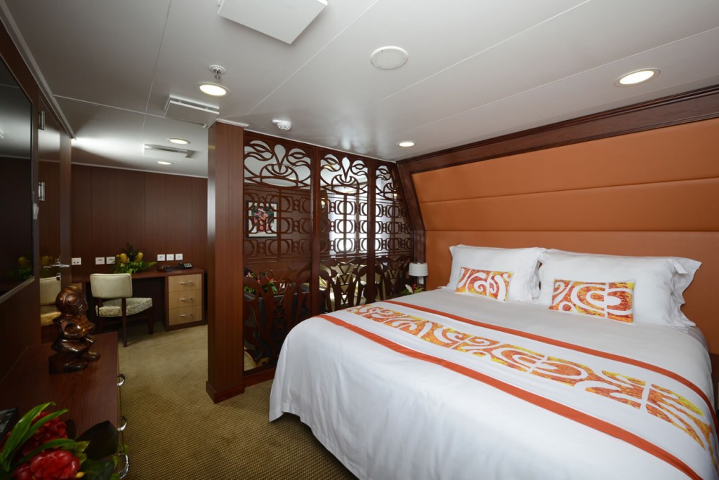 With a length of 126 metres and cruising speed of 15 knots, Aranui 5 blends comfort, practicality, and exploration. Accommodation options range from simple staterooms to deluxe cabins and suites with private balconies, as well as shared dormitories for budget travellers. The ship carries 3,000 tons of freight, continuing Aranui’s vital supply role to the islands while offering passengers an immersive voyage into Polynesian life. Balancing function with leisure, Aranui 5 delivers a distinctive travel experience where cargo delivery meets cultural discovery, connecting guests to the heart of the South Pacific.