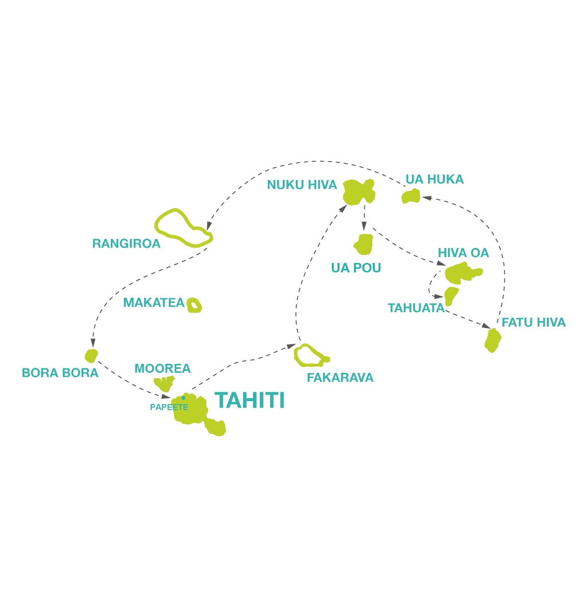 Marquesas Islands, Tuamotu and Society: Mythical and mystical. A land that has attracted explorers, writers, painters and artists. Breathtaking landscapes of mountains, valleys, plateaus and cliffs. A nation of ancient warriors, with their own language and culture. The Marquesas Islands are a world in their own right.