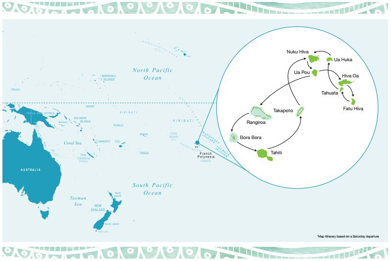 * Voyage departing during Christmas & New Year will attract a 10% increase in tariff to all onboard accommodation with an extra day added to the cruise duration (14 day special itinerary – Marquesas Arts Festival).